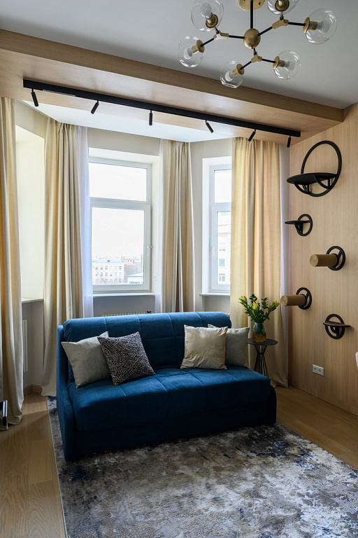 В большой комнате дизайнер Марина Поклонцева и команда «Квартирного вопроса» сделали спальню, кабинет, миниатюрную детскую и даже пентхаус для кота. А заодно обновили соседнюю комнату, куда переедет бабушка.